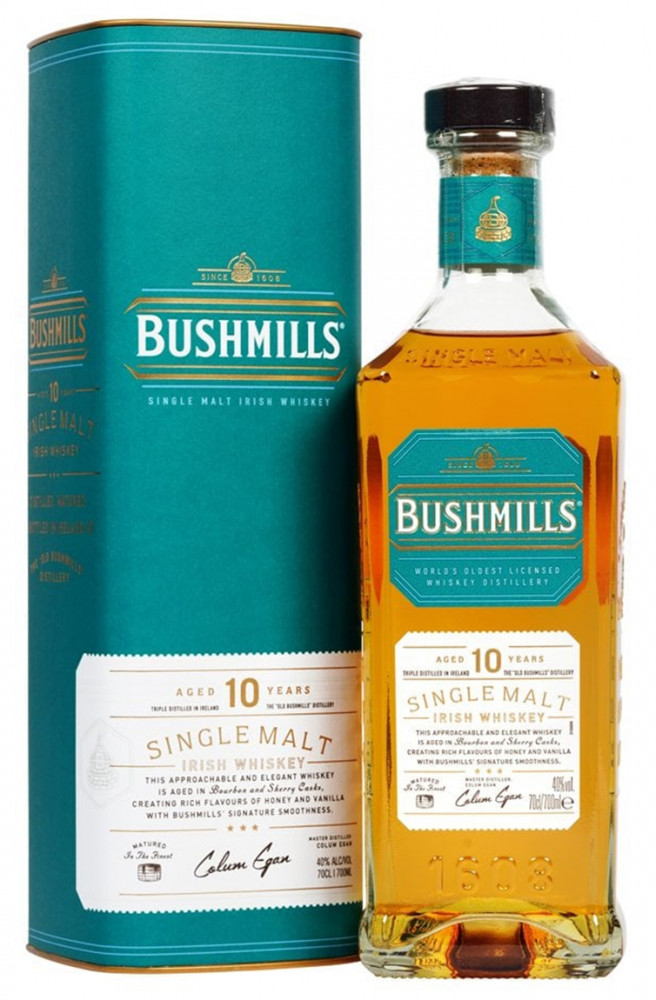 De whiskey wordt drievoudig gedistilleerd, wat zorgt voor een zijdezachte textuur en een zuivere smaak. Vervolgens rijpt hij gedurende 10 jaar in een combinatie van ex-bourbon- en ex-Oloroso sherryvaten, wat leidt tot een delicate balans tussen zoete en kruidige tonen. In de neus biedt Bushmills 10Y aroma’s van honing, rijpe appel en vanille, met subtiele hints van melkchocolade en geroosterde eik. De smaak is zacht en soepel, met tonen van mout, honing, tropisch fruit en lichte kruiden, aangevuld met een vleugje hazelnoot en een subtiele toets van sherry. De afdronk is middellang en verwarmend, met een aanhoudende fruitigheid en een elegante hint van vanille.