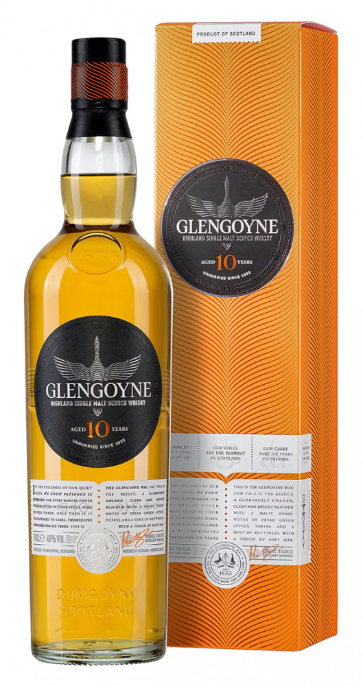 Glengoyne 10 Year Old is een zachte en verfijnde Highland single malt whisky, bekend om zijn frisse, fruitige karakter en ongebruikelijke distillatieproces. Glengoyne distilleert langzamer dan de meeste andere Schotse distilleerderijen, waardoor de natuurlijke, zoete smaken van de whisky volledig tot hun recht komen. Deze 10-jarige expressie heeft gerijpt in een combinatie van Europese en Amerikaanse eiken vaten, waardoor het een subtiele balans heeft tussen lichte vanillezoetheid en delicaat fruit. In de neus komen tonen van frisse groene appels, peer, toffee en een vleugje mout naar voren. De smaak is licht en levendig, met zachte hints van citrus, honing, en geroosterde noten, gevolgd door een aangename romigheid en een vleugje eikenhout. De afdronk is fris, zacht en licht kruidig, waardoor het een toegankelijke whisky is die ideaal is voor zowel beginnende als ervaren whiskykenners. Glengoyne 10Y is een prachtige introductie tot de Glengoyne-stijl en een uitstekende keuze voor wie houdt van lichte, fruitige whisky’s zonder rokerige invloeden.