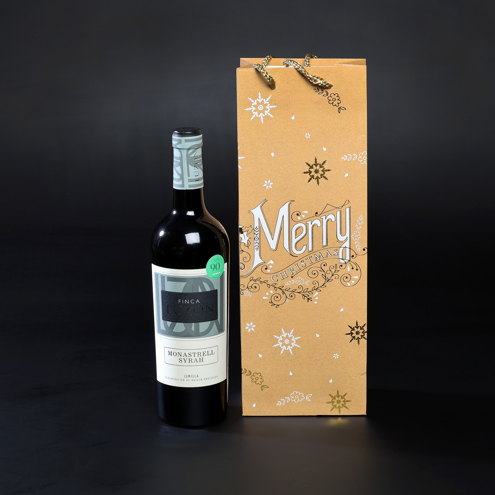 Deze elegante Monastrell-Syrah blend van Bodegas Luzón, verpakt in een chique goudkleurige kerstgeschenktas, is het perfecte cadeau voor de feestdagen.