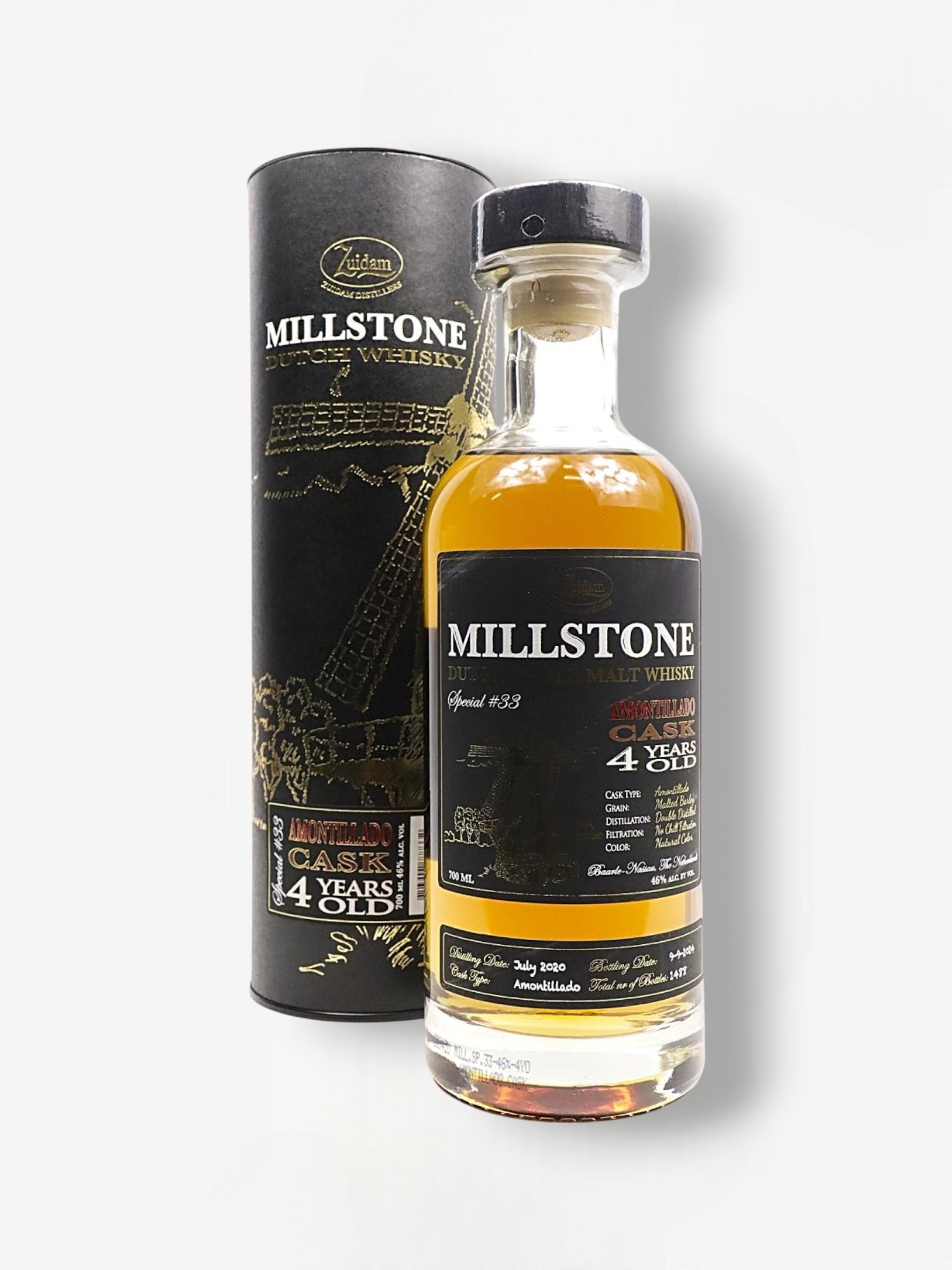 Millstone Amontillado Cask 2020 4Y is een bijzondere en verfijnde Nederlandse single malt whisky die zijn rijping heeft ondergaan in Amontillado sherryvaten. Deze whisky, die slechts 4 jaar heeft gerijpt, biedt een ongekende diepte en complexiteit die typisch zijn voor langere rijpingsperioden, maar met de frisse energie van een jonge whisky. Het aroma komt op met delicate tonen van gedroogd fruit, vijgen en sinaasappelschil, gecombineerd met een subtiele hint van specerijen en eikenhout. De smaak is levendig en vol, met een mooie balans van zoetheid van het fruit en de lichte, nootachtige smaken van de Amontillado vaten. Er zijn ondertonen van karamel, honing en een vleugje vanille, met een lichte kruidigheid die het geheel verdiept. De afdronk is lang en zacht, met een lichte, verfijnde eikenhouten invloed en een vleugje ziltigheid die het karakter van de whisky afrondt. Millstone Amontillado Cask 2020 4Y is een uitstekende keuze voor diegenen die op zoek zijn naar een jeugdige, maar rijke whisky die de complexiteit van sherry rijping perfect combineert met de levendigheid van een jonge malt.