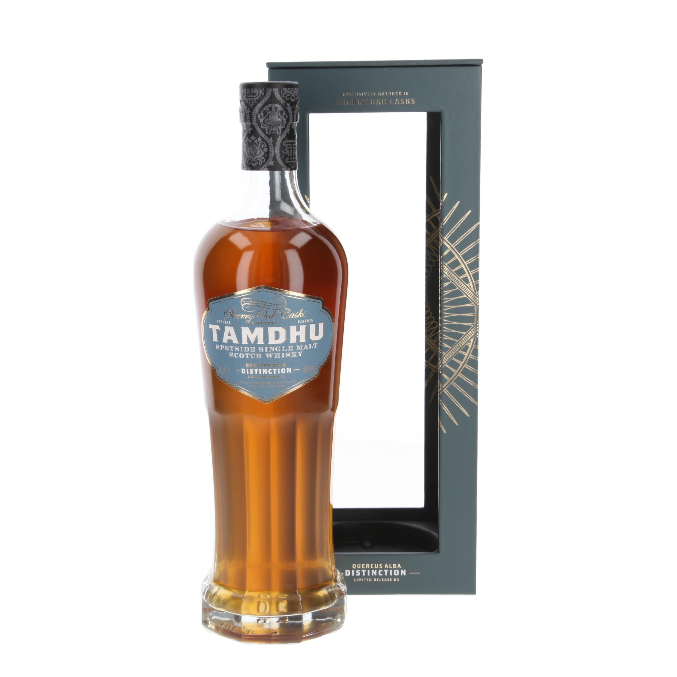 Tamdhu Quercus Alba Distinction 3 is een verfijnde Speyside whisky met tonen van vanille, karamel en een lange, elegante afdronk.