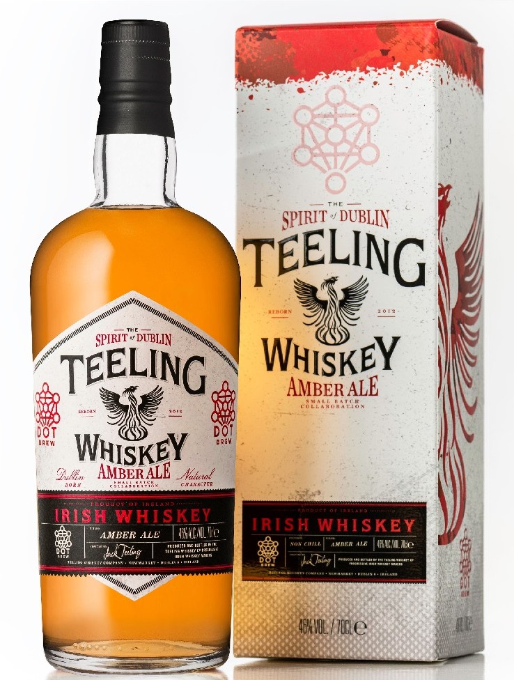 Teeling Amber Ale Small Batch is een innovatieve Ierse whisky die voortkomt uit een samenwerking tussen Teeling Whiskey en de ambachtelijke brouwerij DOT Brew uit Dublin. Deze expressie begint met een blend van graan- en maltwhisky’s die tot vijf jaar hebben gerijpt in ex-bourbonvaten. Vervolgens ondergaat de whisky een extra rijping van 15 maanden in vaten die eerder DOT Brew’s Rum Red Dark VII amber ale bevatten, wat resulteert in een unieke smaakbeleving. In de neus biedt deze whisky aroma’s van karamel, toffee en hoppy tonen van ananas, aangevuld met poedersuiker, een vleugje vernis en sinaasappelschil. Het smaakpalet is medium van body met romige vanille, peperige moutigheid, hints van hop en rijpe appels. De afdronk is middellang met bierachtige tonen, vergelijkbaar met een porter, en groene noten die consistent zijn met de neus. Met een alcoholpercentage van 46% wordt Teeling Amber Ale Small Batch non-chill filtered gebotteld, wat zorgt voor een rijke en authentieke smaakervaring. Deze whisky is een bewijs van Teeling’s toewijding aan innovatie en samenwerking binnen de Ierse whisky-industrie.