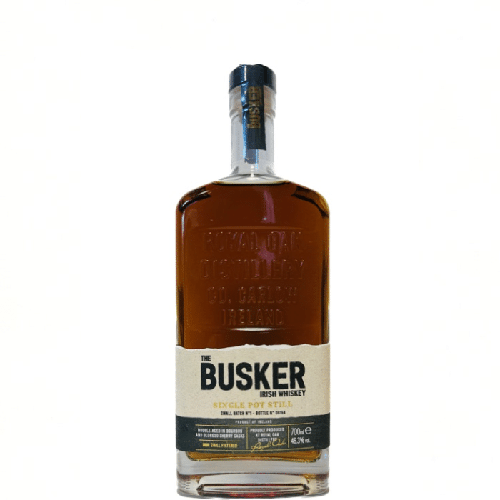 The Busker Single Pot Still Small Batch is een uitzonderlijke Ierse whiskey die de traditionele pot still-distillatiemethode combineert met moderne rijpingstechnieken. Geproduceerd door de Royal Oak Distillery in County Carlow, wordt deze whiskey drievoudig gedistilleerd voor een zachte en complexe smaakbeleving. De rijping vindt plaats in zowel first-fill bourbonvaten als Oloroso sherryvaten, wat zorgt voor een rijke en gelaagde smaak. Met een alcoholpercentage van 46,3% en non-chill filtered gebotteld, behoudt deze whiskey zijn natuurlijke smaken en aroma’s, wat bijdraagt aan een authentieke drinkervaring.