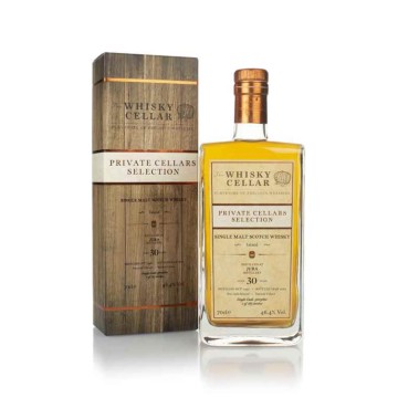De Whisky Cellar Jura 1990 is een zeldzame en buitengewone single malt whisky van het iconische Isle of Jura, gebotteld door de onafhankelijke bottelaar Whisky Cellar. Gedistilleerd in 1990 en gedurende meer dan drie decennia gerijpt in zorgvuldig gekozen eikenhouten vaten, biedt deze whisky een ongeëvenaarde diepte en verfijning. De lange rijping heeft een complex smaakprofiel gecreëerd, met aroma’s van rijpe perzik, honing, zachte kruiden en een subtiele hint van zeezout die het eilandkarakter benadrukt. Het palet ontvouwt zich met rijke tonen van toffee, geroosterde noten, donkere chocolade en een vleugje turfrook, allemaal perfect in balans. De afdronk is lang en gelaagd, met een harmonie van zoetheid en ziltige nuances. Gebotteld op natuurlijke sterkte zonder koude filtering, is dit een meesterwerk dat de kenner zeker zal bekoren.